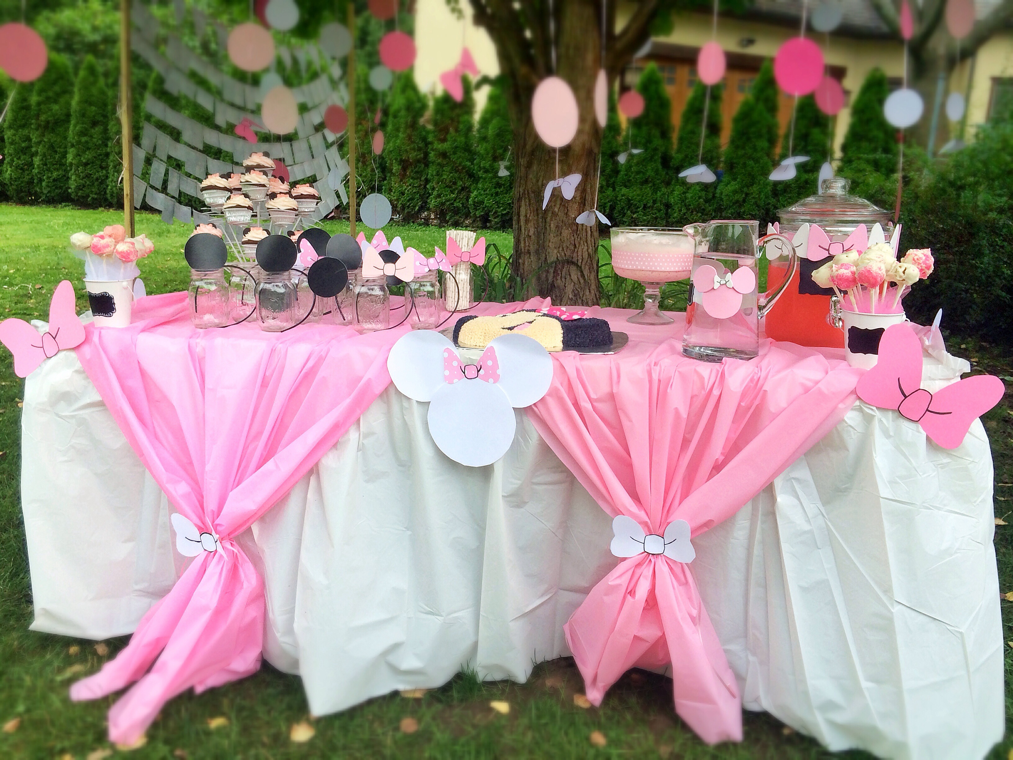 This was my daughters first birthday party, which was Minnie Mouse themed. I wanted to have it outside and watched the weather like a crazy person everyday, every 10 minutes. It looked like it might rain through the whole day but thank goodness it held out.